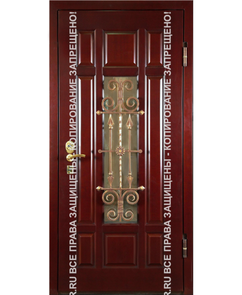 Железная входная дверь трехконтурная МДФ с ковкой/стеклом 3107